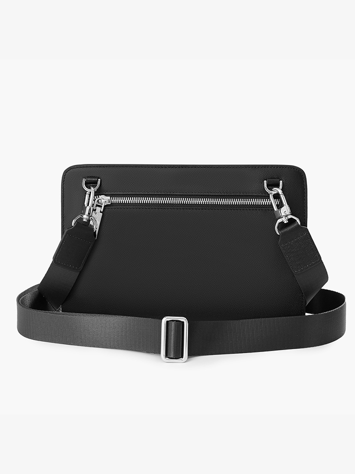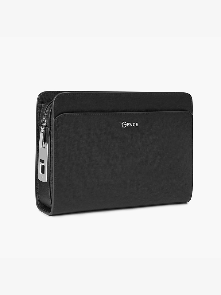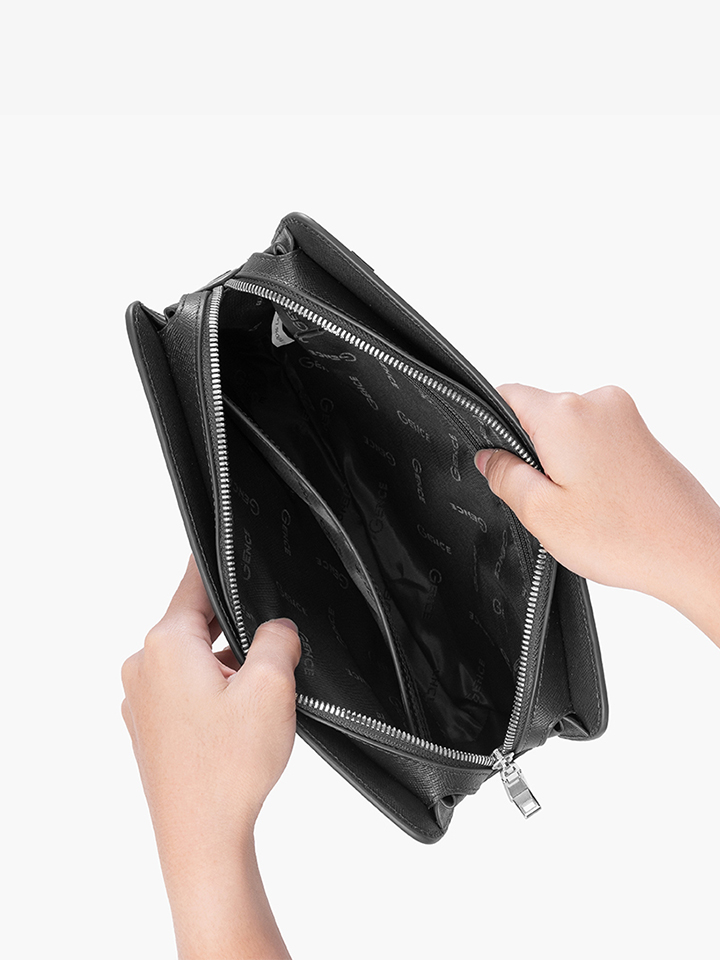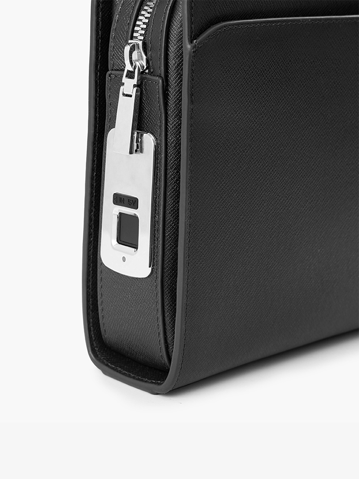 Clutch cầm tay đeo chéo khóa vân tay da bò Taiga màu đen RB14