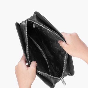 Hãy là người đầu tiên nhận xét “Clutch cầm tay đeo chéo khóa vân tay da bò Taiga màu đen RB14”