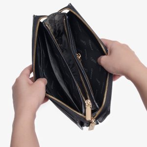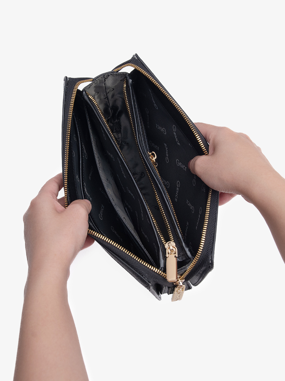 Ví được chia nhiều ngăn với khóa zip trong lồng với khóa ngoài độc đáo